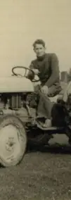 ‘Ik ben dan het huishouden blijven doen en ondertussen hielp ik ook mijn vader op de hofstee of ging ik bij boer Timmerman werken. Dat was de grootste boer van Uitkerke. In het begin, aan mijn 14 jaar, was ik een knechtje. Mijn vader had gezegd dat de kleinen wel een beetje zou komen helpen. Zoals een beetje ‘toesmieten’ – halmen stro naar de desmachine smijten. Gaandeweg werd ik daar de grote knecht. Ik was amper 19 toen ik al heel wat verantwoordelijkheid kreeg. Zo mocht ik al meteen op de nieuwe tractor rijden. Boer Timmerman was één van de eerste die een tractor had hier in Uitkerke: een Ford Ferguson. Dat was in het jaar 1949. Was dat een belevenis! En fier dat ik was dat ik daarmee mocht rijden! Ik ben dan ook snel mijn rijbewijs gaan halen en zo mocht ik ook de nieuwe citroën van de boer besturen. We reden ermee naar weides die wat verderop lagen om er distels te gaan uitdoen.’