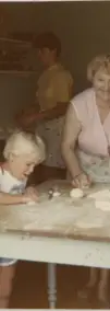De boules werden als volgt gemaakt. Op deze foto (FOTO 12) zie je mijn vrouw die de boules draait. De boules moesten allemaal in bolletjes gedraaid worden. Mijn vrouw deed dat samen met mijn moeder, én met mij