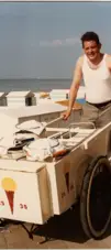 (min 24:30) Op deze foto (FOTO 26) zie je mijn vrouw die me bevoorraadt met ijs. Als mijn ‘kupe’ leeg was, riep ik. Zij stond op de dijk. Daar mocht ze eigenlijk niet verkopen, maar als de politie passeerde keek hij eens naar de appartementen, versta je. In de weekends leurde mijn zoon voor mij (FOTO 23).